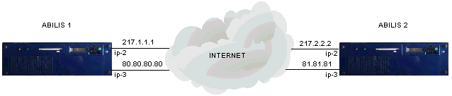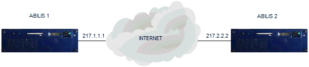 The following example considers two Abilis placed in remote sides, with a static public IP address and a backup ISDN line each one :