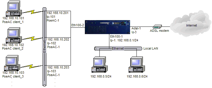 The connection to the Access Concentrator can be done by using standard Windows PPPoE client or common routers that support this protocol.