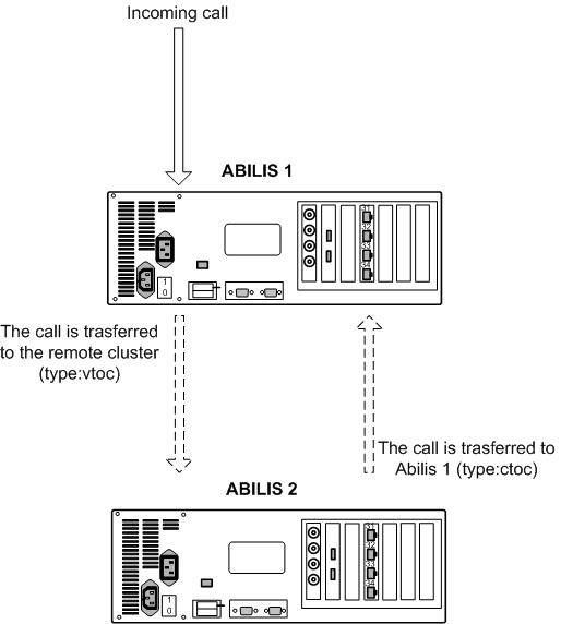 A “Cluster” identifies a connection, used to transport compressed phone calls, between two Abilis. Each cluster is identified with a clear label registered in the Abilis configuration.