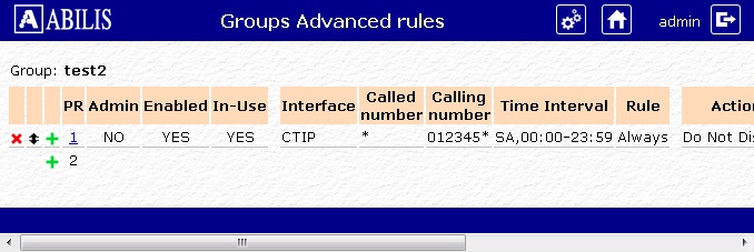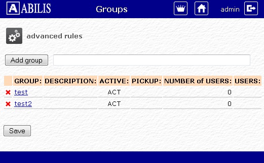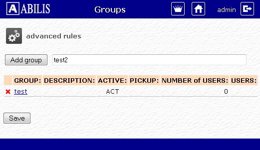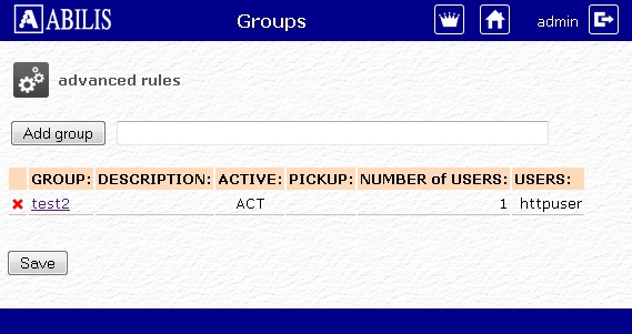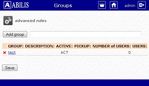 Click advanced rules on Group administration page. A list of existing groups is shown.
