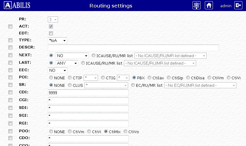[11:26:29] ABILIS_CPX:a http rights path:/sys/admin/cti/rout/ user:httpuserCOMMAND EXECUTED [11:27:04] ABILIS_CPX:d http rights- Not Saved (SAVE CONF) ------------------------------------------------------- ------------------------------------------------------------------------------- ID: PATH: USER: FILE: DIR: RECUR: PROT: ------------------------------------------------------------------------------- 1 /sys/ admin r--- l--- YES PLAIN,SSL ... ------------------------------------------------------------------------------- 16 /sys/admin/cti/rout/ httpuser r--- l--- YES PLAIN,SSL ------------------------------------------------------------------------------- ...