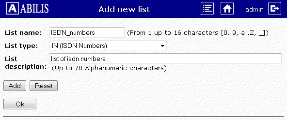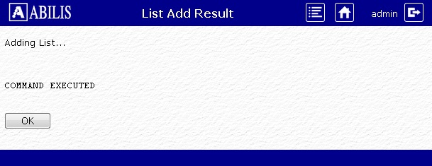 Insert the list name, description and select the type. Then click Add button. The operation will be validated in this page: