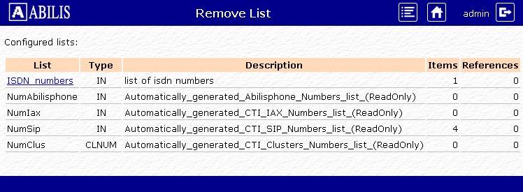 In the previous page click on Remove existing list link: this page will be shown.