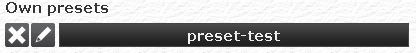 To save a set of parameters click on Save preset. A pop-up window asks the preset's name. Clicking on the Preset tab, a list of saved presets is displayed