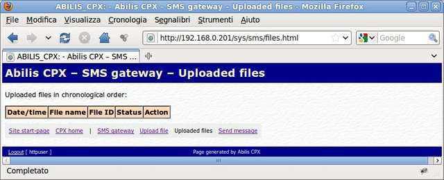 [11:50:17] ABILIS_CPX:a http rights path:/sys/sms/ user:httpuserCOMMAND EXECUTED [11:50:40] ABILIS_CPX:d http rights- Not Saved (SAVE CONF) ------------------------------------------------------- ------------------------------------------------------------------------------- ID: PATH: USER: FILE: DIR: RECUR: PROT: ------------------------------------------------------------------------------- 1 /sys/ admin r--- l--- YES PLAIN,SSL ------------------------------------------------------------------------------- 5 /sys/advuser/ httpuser r--- l--- YES PLAIN,SSL ------------------------------------------------------------------------------- 6 /sys/cp/ ------------------------------------------------------------------------------- 4 /sys/disa/ disa r--- l--- YES PLAIN,SSL ------------------------------------------------------------------------------- 3 /sys/opc/ test r--- l--- YES PLAIN,SSL ------------------------------------------------------------------------------- 2 /sys/pub/ anonymous r--- ---- YES PLAIN,SSL ------------------------------------------------------------------------------- 8 /sys/sms/ httpuser r--- l--- YES PLAIN,SSL ------------------------------------------------------------------------------- 7 /sys/trfa/ httpuser r--- l--- YES PLAIN,SSL -------------------------------------------------------------------------------