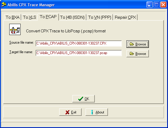 Abilis CPX traces are saved in a proprietary format “cpx”. Follow these instructions to convert them in other formats (pcap, bxa, ...).