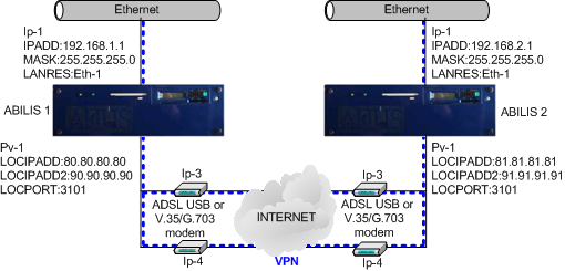 With the “backup over ISDN” option, in case of failure of the permanent VPN connection, the Abilis tunnel is instantaneously switched onto ISDN backup lines.