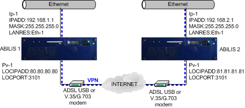 To configure a tunnel for data and voice communication, refer to Section 68.13, “How to configure a VPN tunnel between two Abilis”.