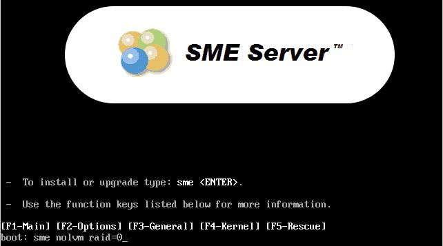 At the boot screen, write sme nolvm raid=0 and press Enter.