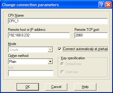 • Connect automatically at startup: if it is selected, the connection to Abilis CPX is generated automatically at the program start-up; if it is not selected, the connection must be manually done by choosing Connect to CPX form Connections menu.