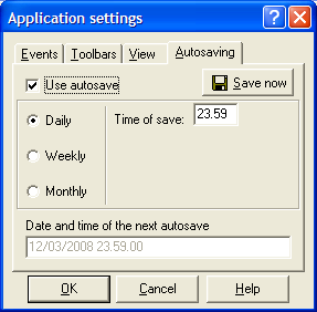 In Autosaving tab, select Use autosave, the save frequency (by default is set up to Daily) and the time to save (by default is set up to 23.59); at this date, the calls will be saved in a yyyy-mm-dd---hh-mm.dat file placed in the same directory of Collect.exe.