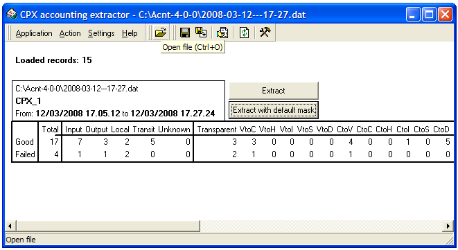 Click the Open button and select the DAT (or BCK) file that you want to convert: summary information will be shown about the number of good and failed calls, the type of the call, etc...