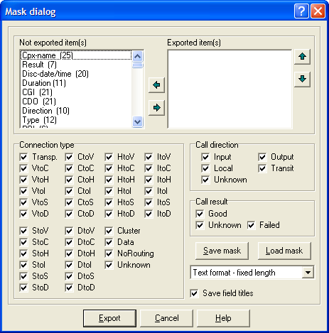 • If you click the Extract button, a new window allows to select the fields to insert in the mask or to load an existing mask. When the mask has been defined, click the Export button to create a TXT file.