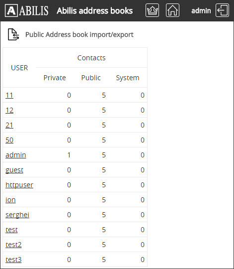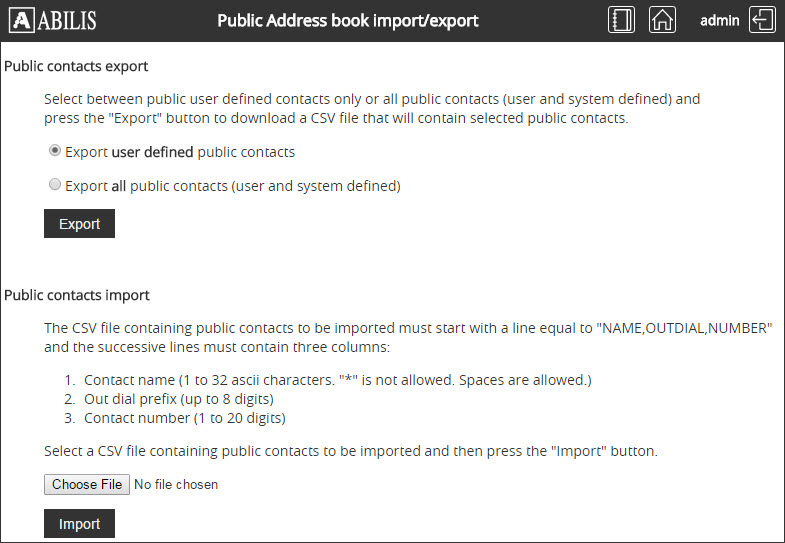 Click on Public Address book import/export to import or export the public address book. The following page will be displayed: